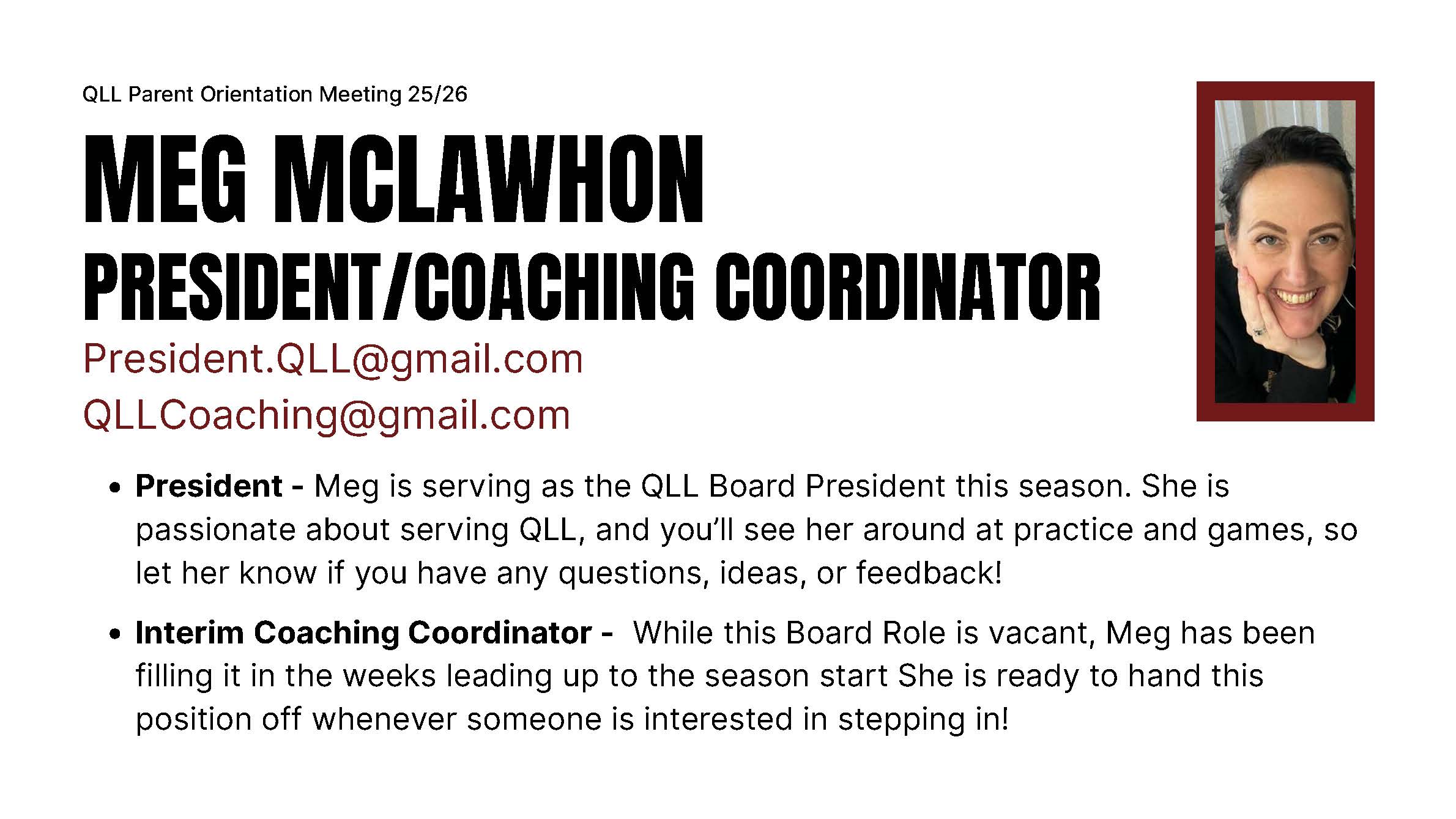Board Meetings are held the last Tuesday of the month and are open to all QLL members.