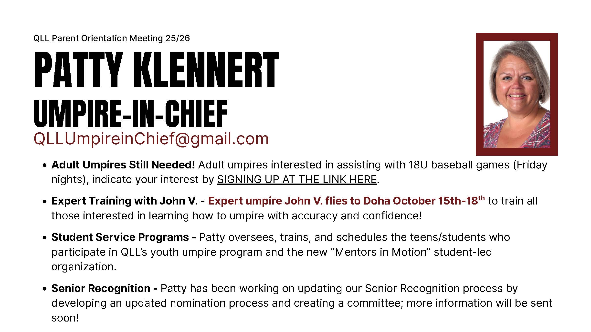 If interested in Coaching, Umpiring, or helping in other ways, please notify our